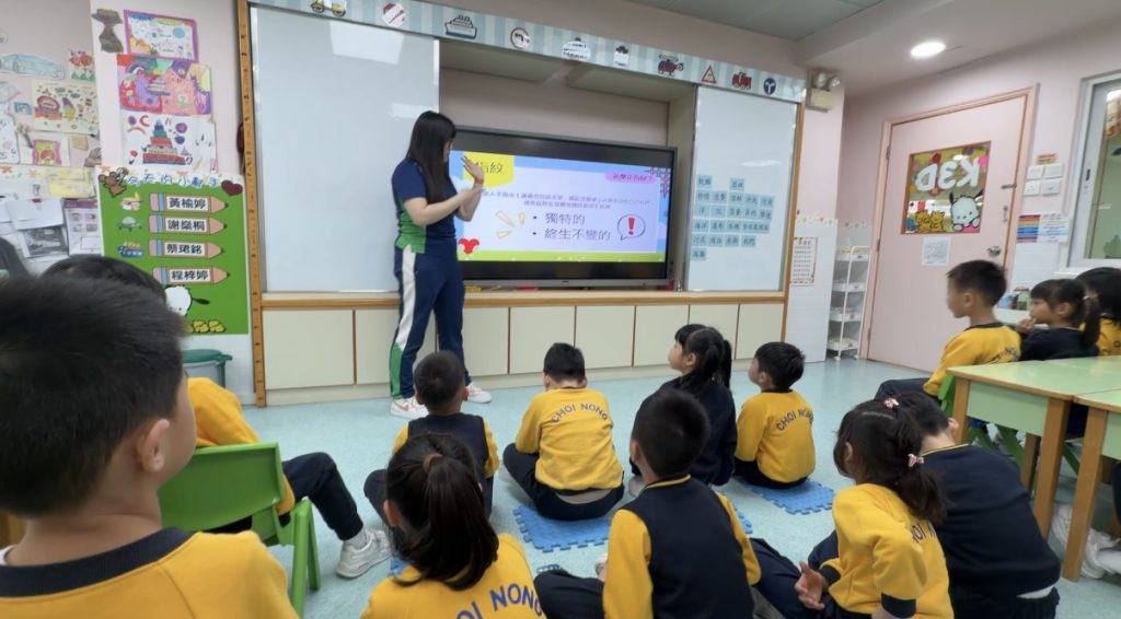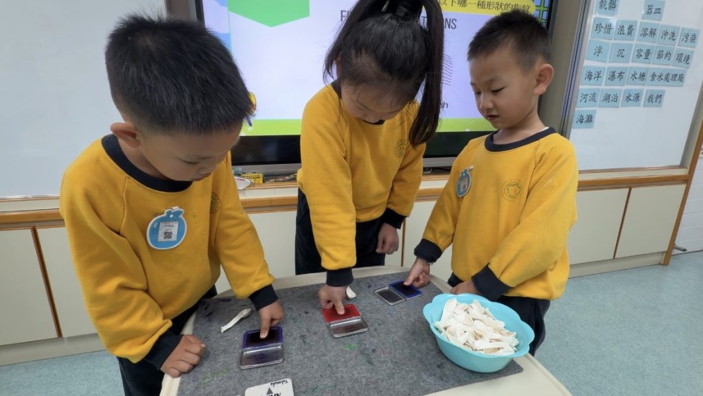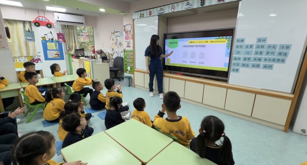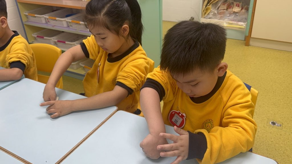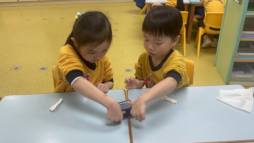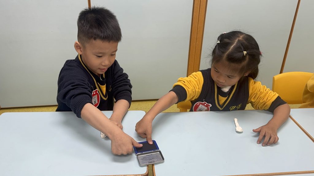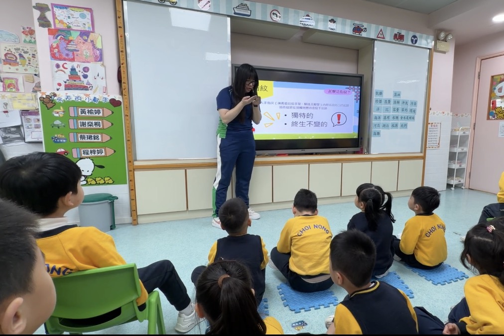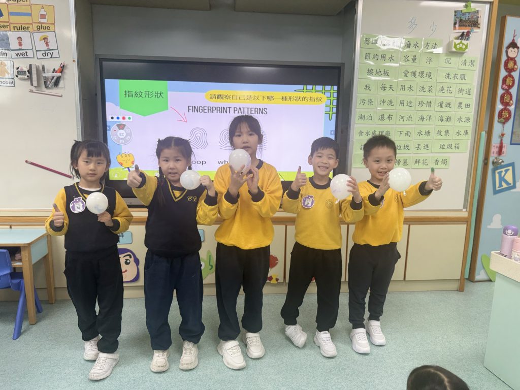 幼稚園(175灣景分校)K3級幼兒開展了有趣的常識活動——「指紋的秘密」。首先,老師給幼兒介紹了什麼是指紋,探討了指紋的作用,幼兒亦發現到每個人的指紋都是獨一無二的。