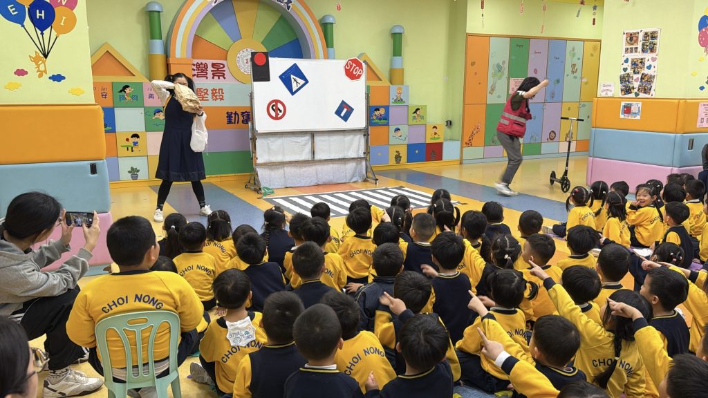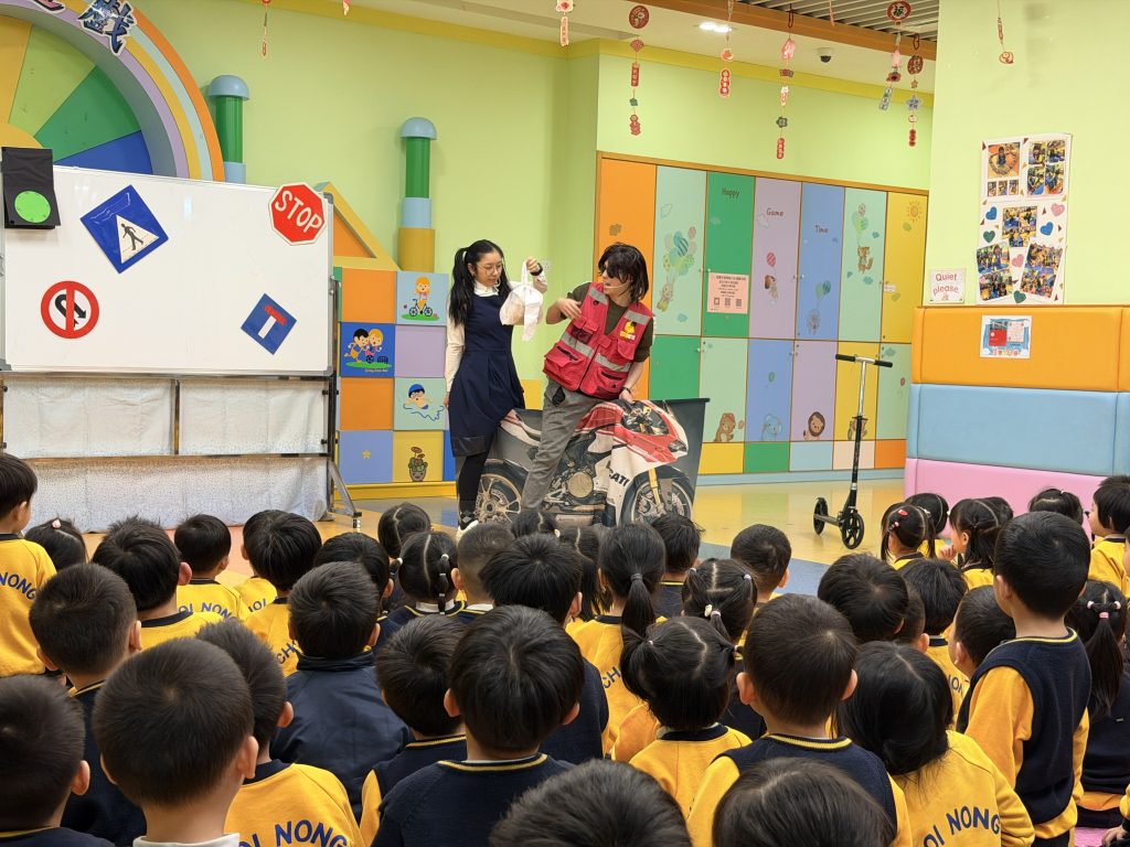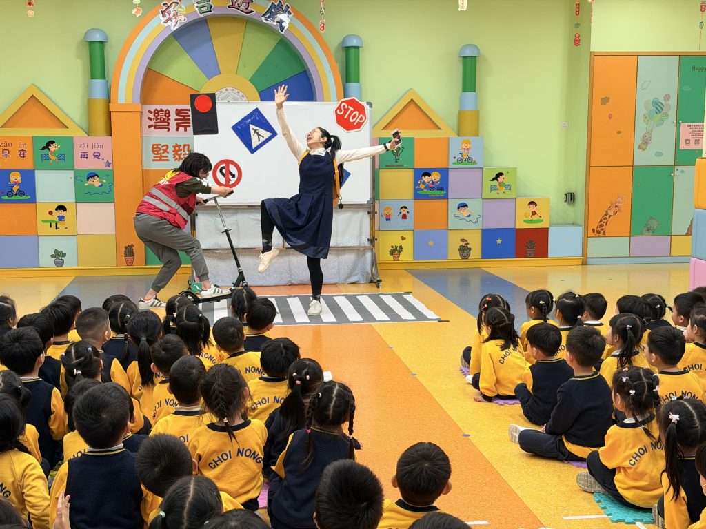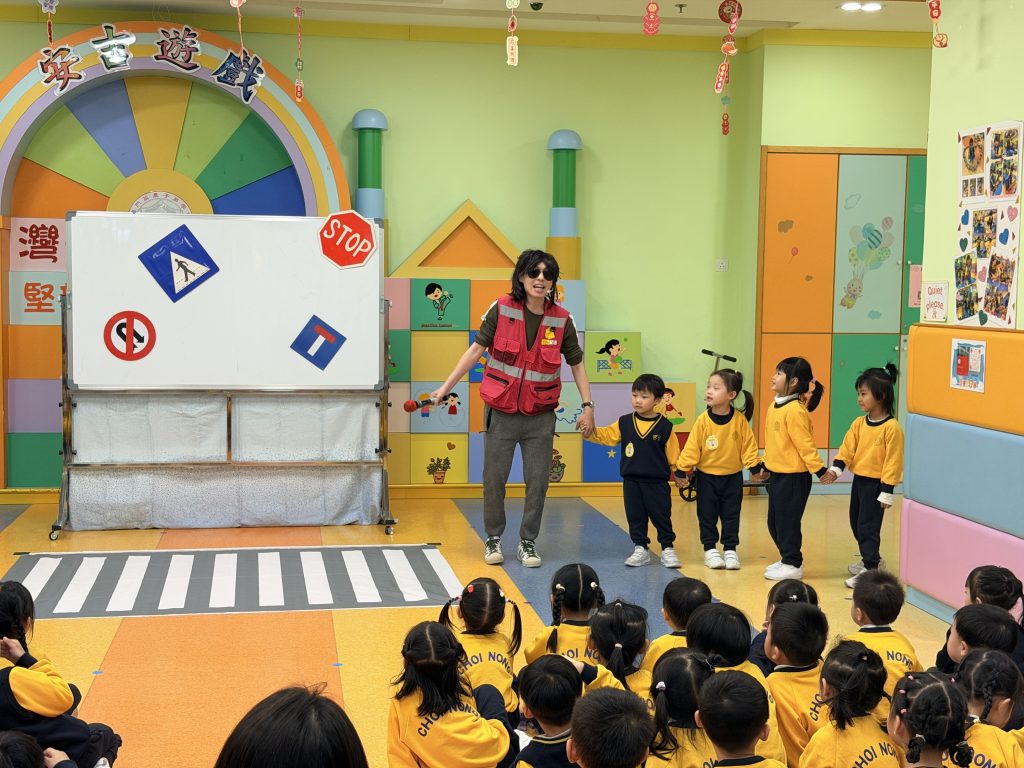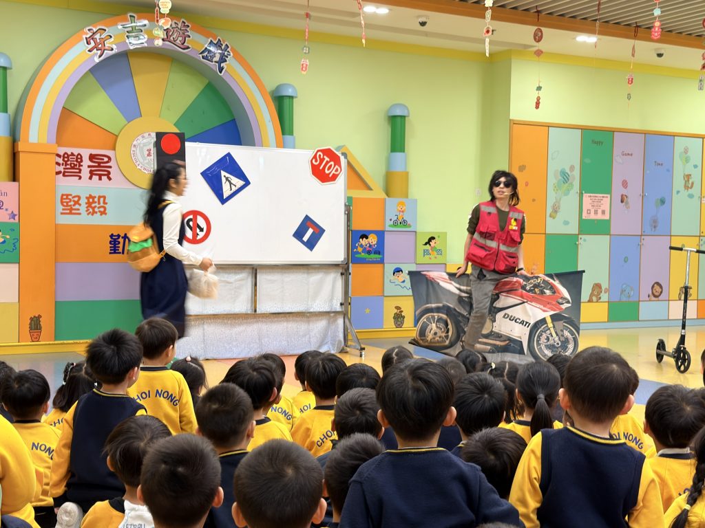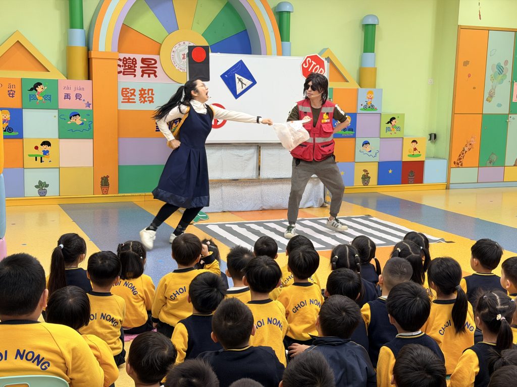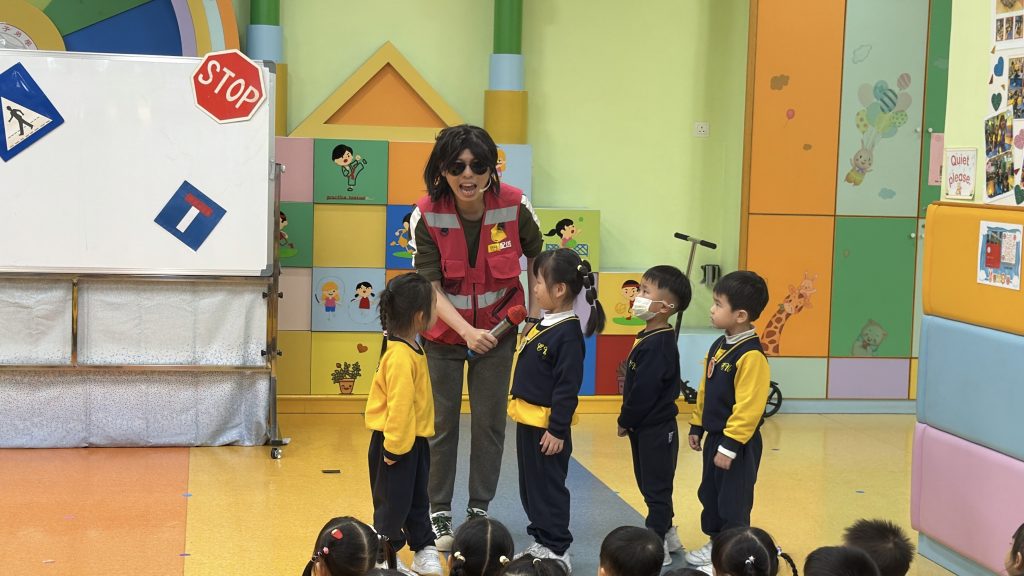 為了讓小朋友牢記交通安全守則,學校邀請交通事務局的職員,透過話劇表演、互動提問與小朋友親身體驗,生動地學習過馬路的正確方式。話劇裡模擬真實場景,提醒大家紅燈停、綠燈行,不追逐、不奔跑;互動提問環節讓小朋友主動思考,分辨安全與危險行為;親身體驗過馬路流程,學會走斑馬線、左右觀察來車、禮讓車輛。