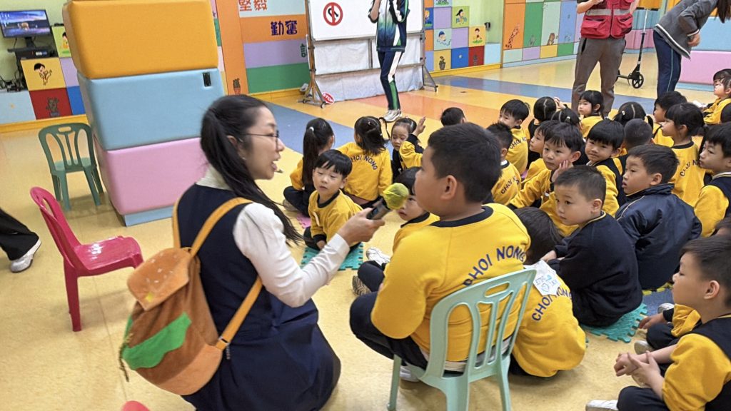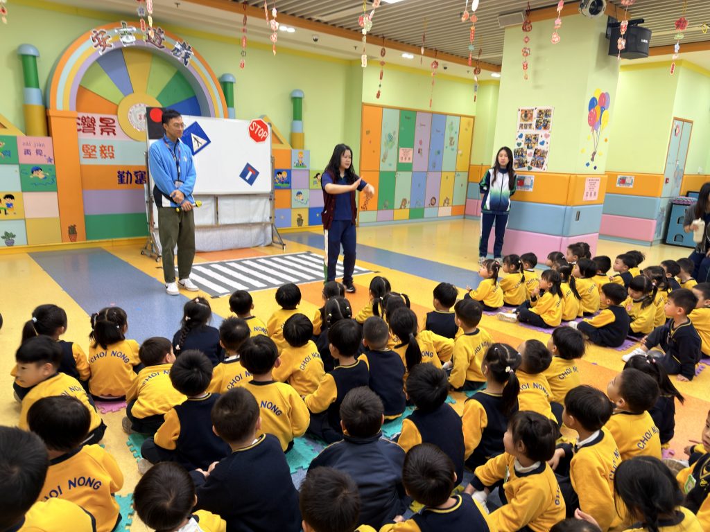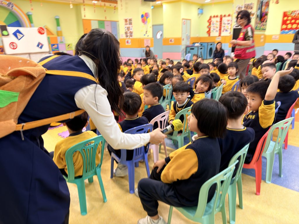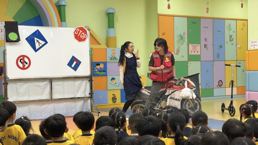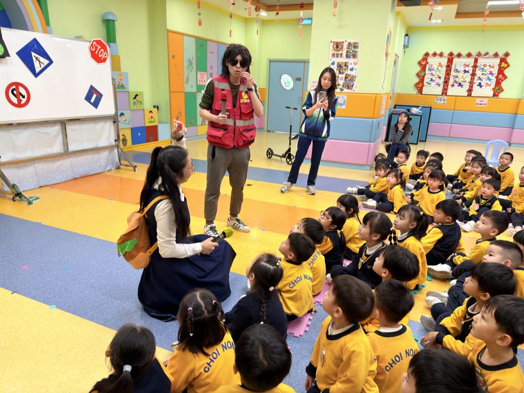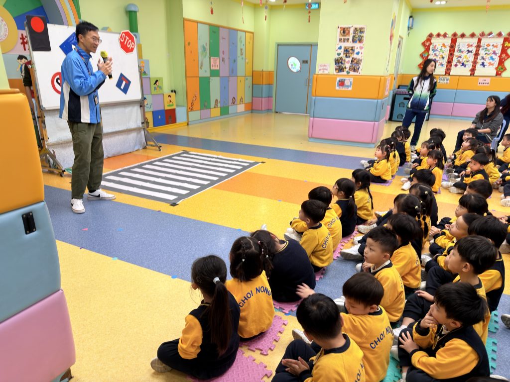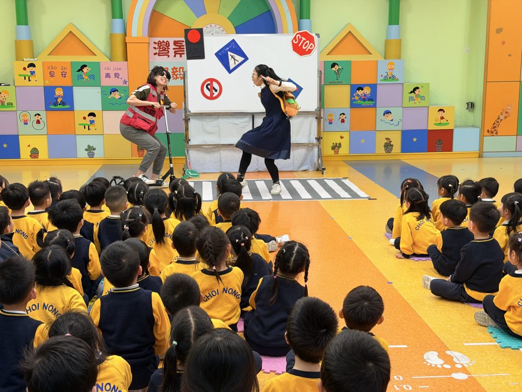 為了讓小朋友牢記交通安全守則,學校邀請交通事務局的職員,透過話劇表演、互動提問與小朋友親身體驗,生動地學習過馬路的正確方式。話劇裡模擬真實場景,提醒大家紅燈停、綠燈行,不追逐、不奔跑;互動提問環節讓小朋友主動思考,分辨安全與危險行為;親身體驗過馬路流程,學會走斑馬線、左右觀察來車、禮讓車輛。