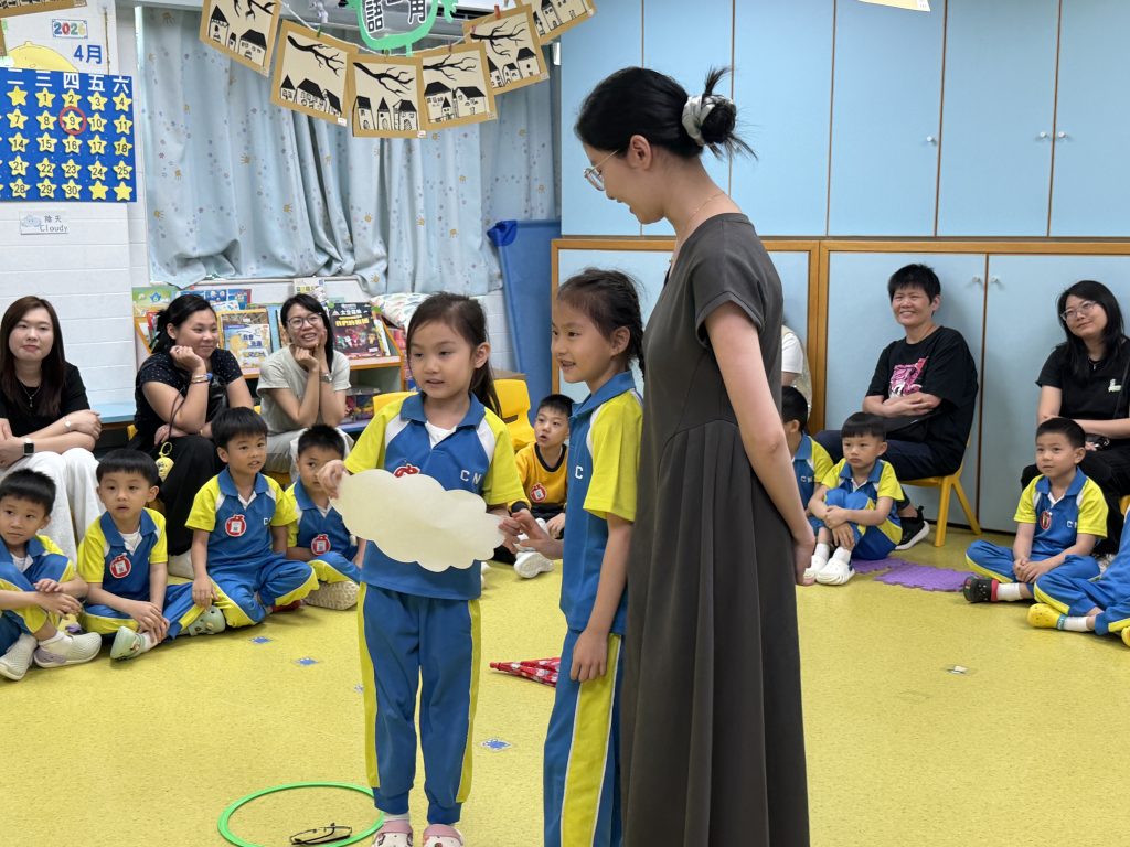 為加強家長與學校之間的溝通,並讓家長更了解子女在校的學習情況,幼稚園(175灣景分校)舉辦了幼稚園家長觀課日,邀請家長走進課堂,近距離觀摩孩子的學習過程。其中K3F班的孩子們在班主任與外教Miss Angelique的帶領下,展開了一場生動有趣的英語天氣之旅。