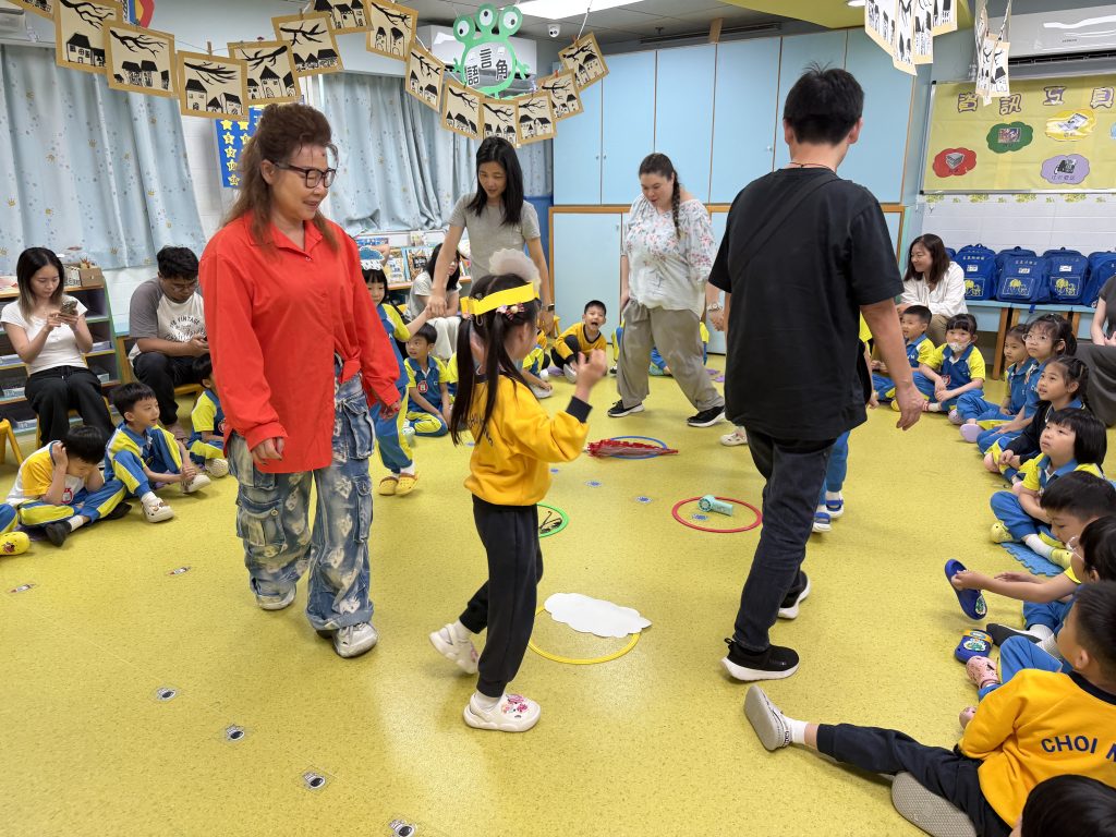 課堂隨着輕快活潑的兒歌《What’s the weather like today?》拉開序幕,孩子們在旋律中輕鬆掌握了“Sunny”、“Rainy”、“Windy”及“Cloudy”四種天氣詞彙。隨後的互動遊戲環節,家長與小朋友共同參與,現場歡笑不斷,氣氛熱烈。