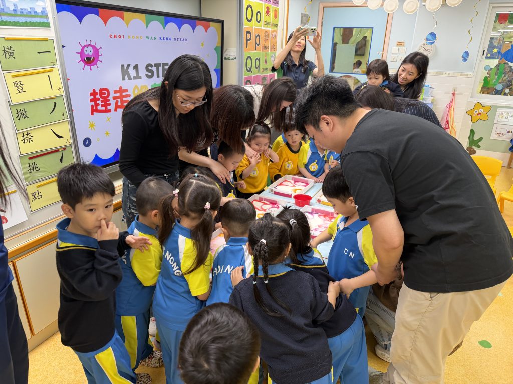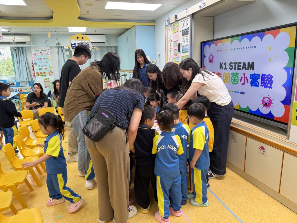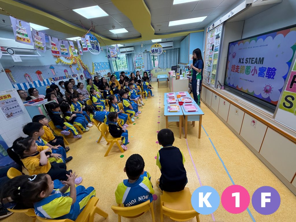 在幼稚園(175灣景分校)K1F班的家長觀課日,課室裡充滿了歡笑聲!當天科學常識課以「注意衛生」為主題,老師透過生動有趣的「趕走細菌」小實驗,讓小朋友學習清潔的重要性。課堂更邀請家長與小朋友一起動手做實驗,親子互動溫馨又好玩!看到小朋友們專注好奇的眼神,並在遊戲中建立衛生習慣,真是充滿意義的一課。家校同心,讓學習變得既好玩又難忘!