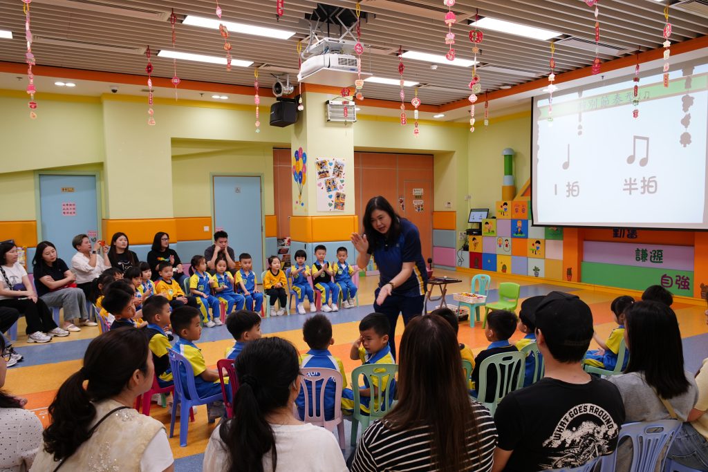 課堂以活潑的「音樂熱身操」揭開序幕,孩子們隨節拍拍打身體、唱出節奏,家長們也笑得燦爛。