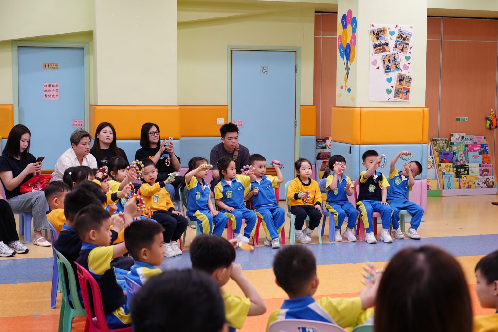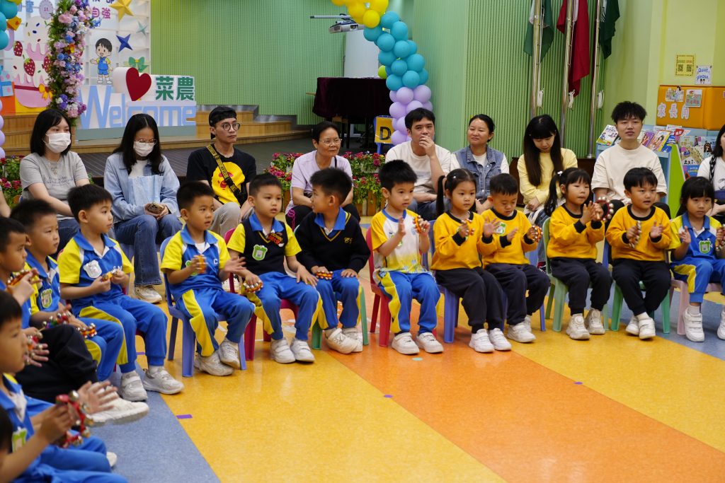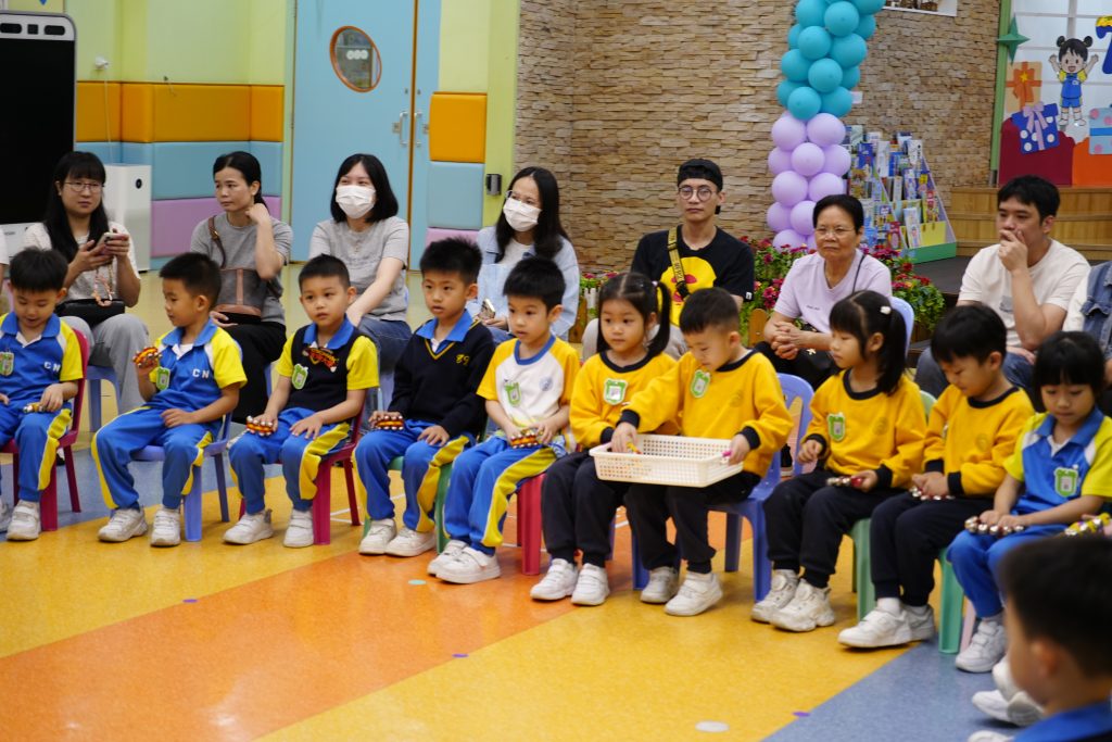 最開心的親子互動環節,家長與孩子手持馬鈴和沙鎚,組成超級樂隊,清脆樂聲此起彼落。