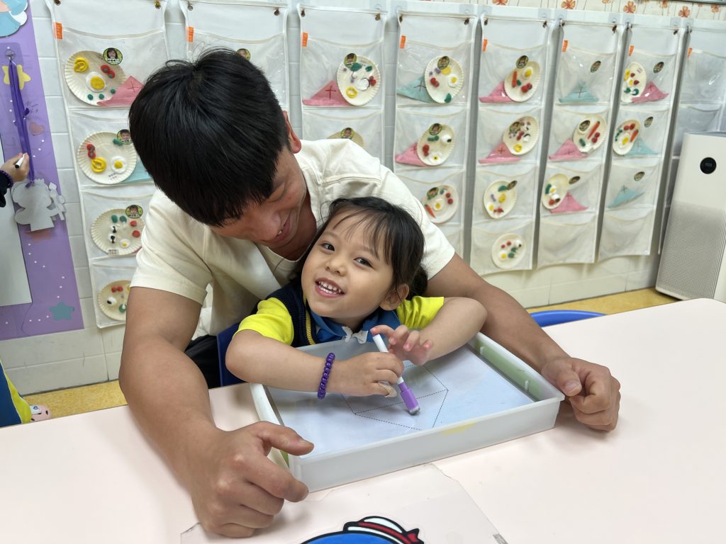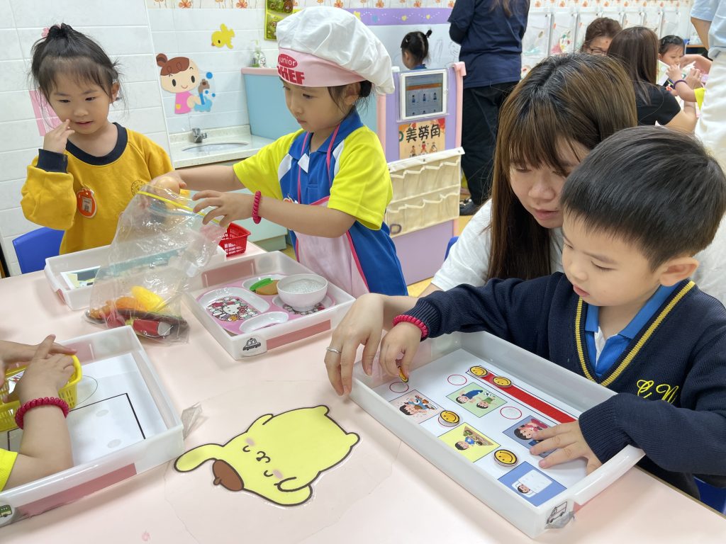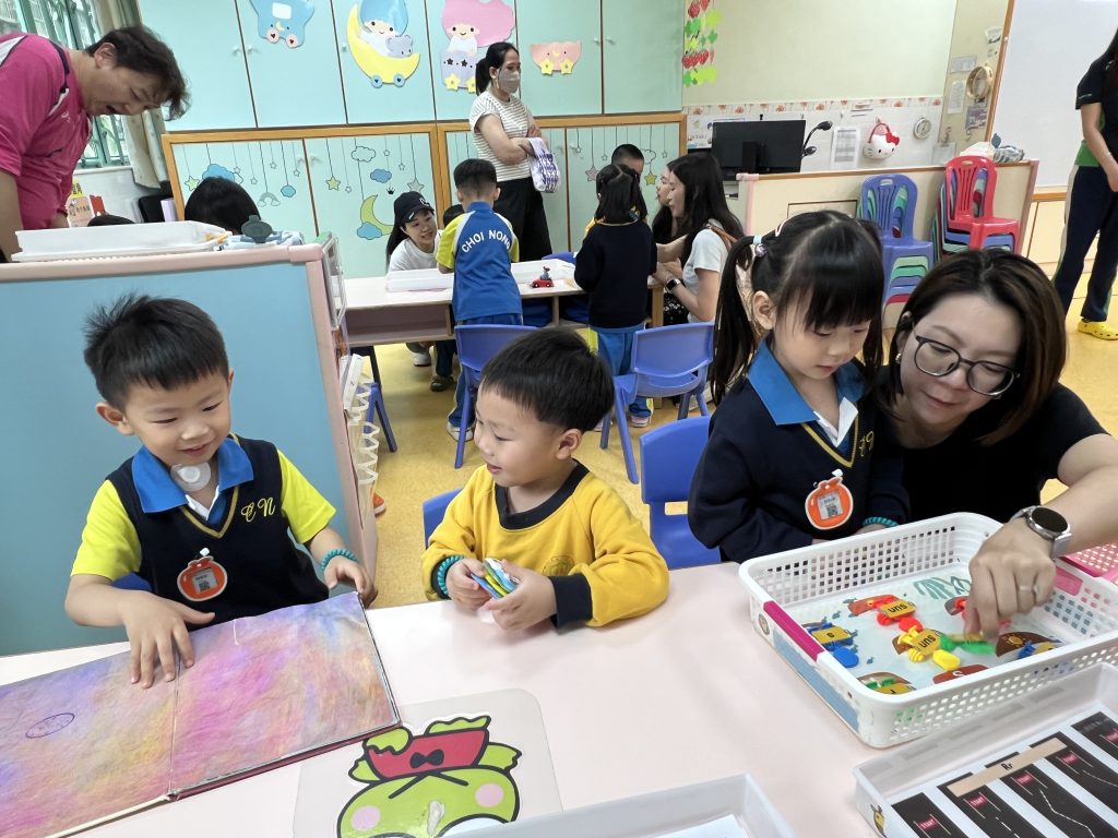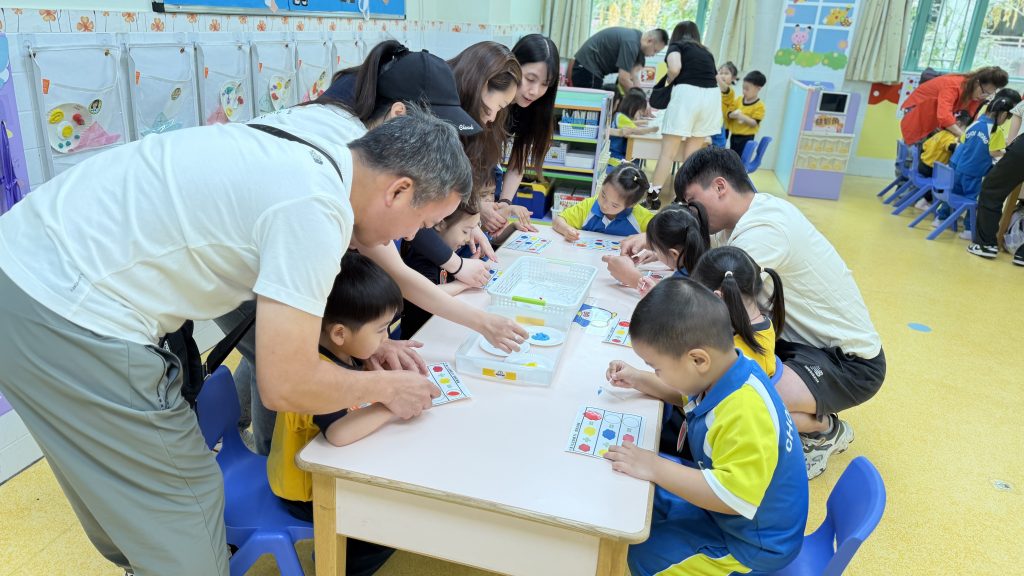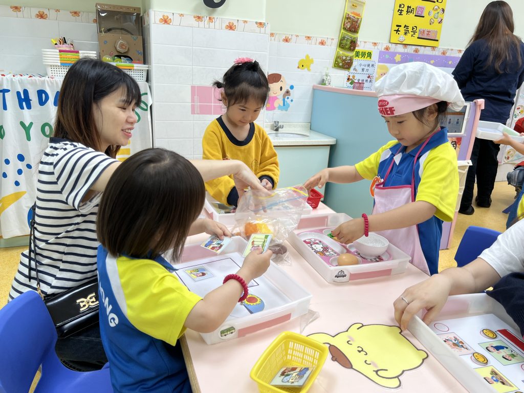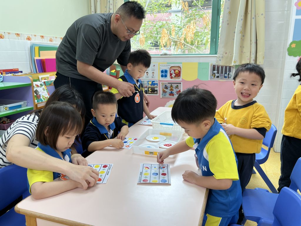 區角學習環節則設有「探索角」、「語言角」、「益智角」及「美勞角」,家長可陪伴幼兒自由選擇角落,操作不同學具,從中觀察孩子的操作與解難能力。過程中笑聲不斷,家長表示既能從區角活動了解子女的興趣,也能透過混色實驗增進親子溝通。結合區角自主學習與集體探索,有助提升幼兒的好奇心及小手肌發展。活動在和諧歡樂的氣氛下圓滿結束。