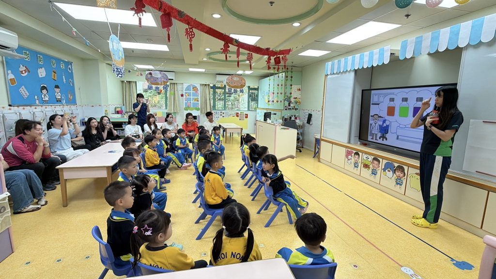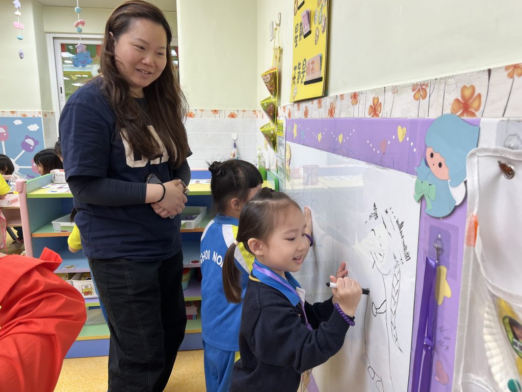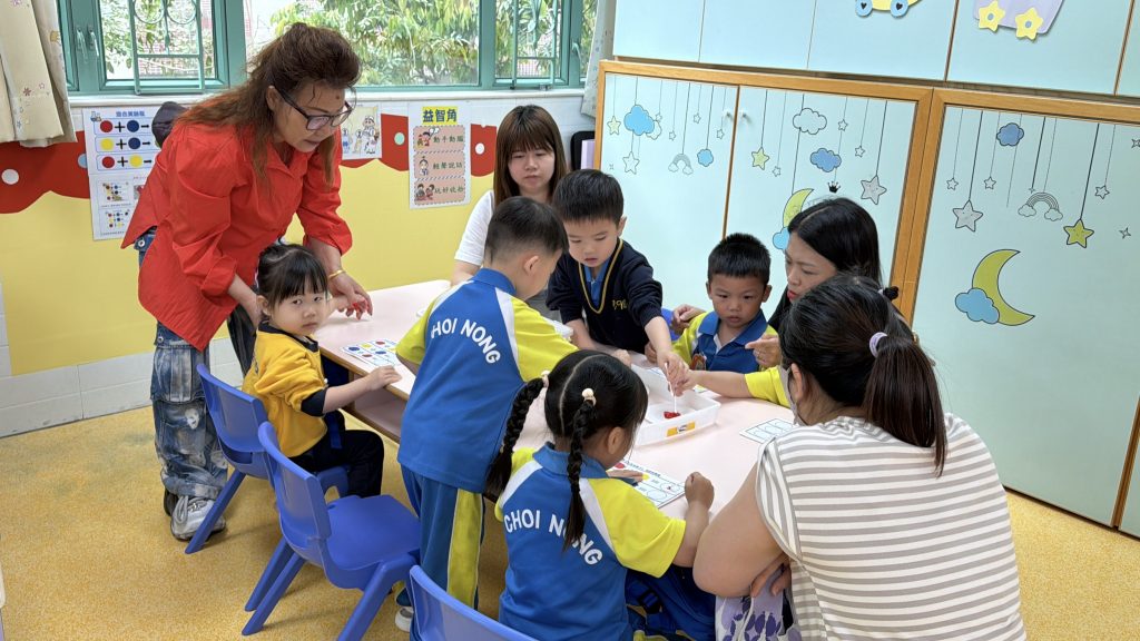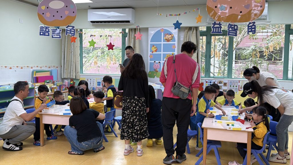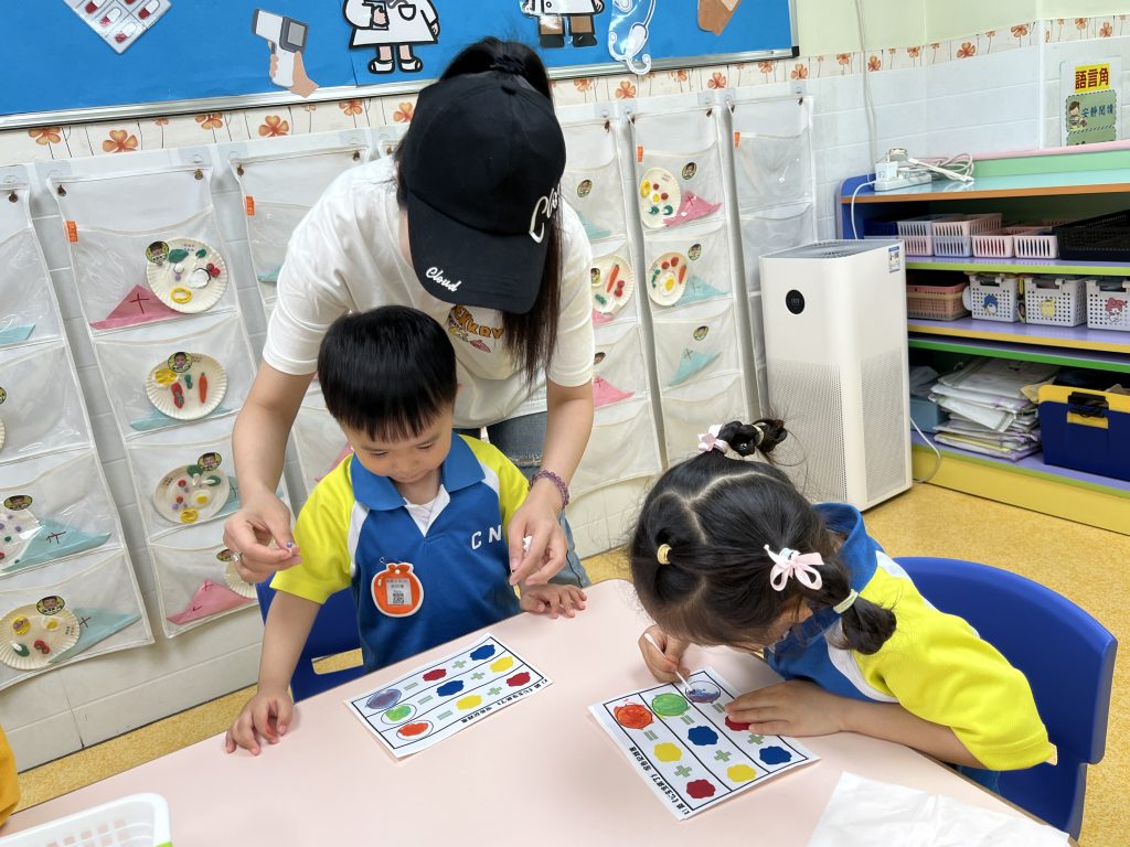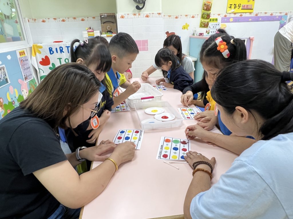 區角學習環節則設有「探索角」、「語言角」、「益智角」及「美勞角」,家長可陪伴幼兒自由選擇角落,操作不同學具,從中觀察孩子的操作與解難能力。過程中笑聲不斷,家長表示既能從區角活動了解子女的興趣,也能透過混色實驗增進親子溝通。結合區角自主學習與集體探索,有助提升幼兒的好奇心及小手肌發展。活動在和諧歡樂的氣氛下圓滿結束。