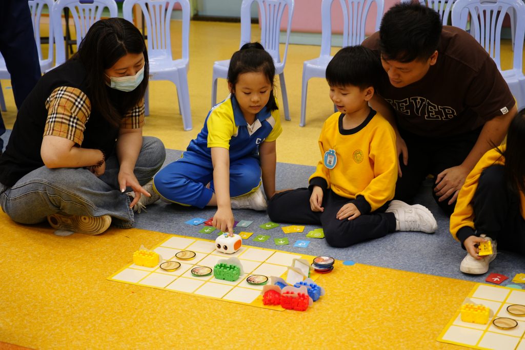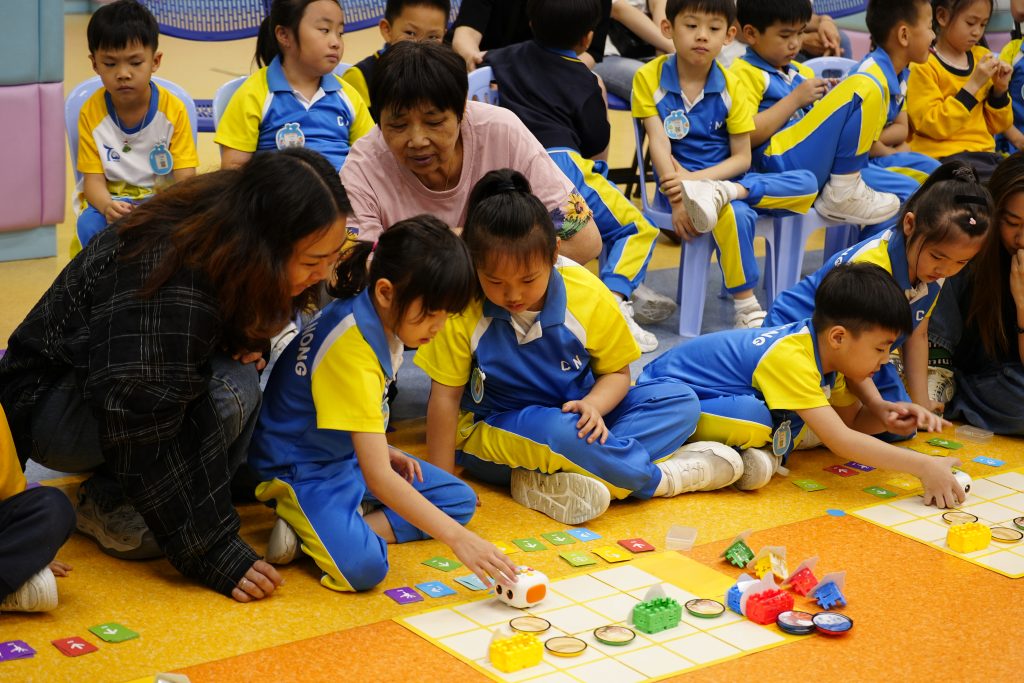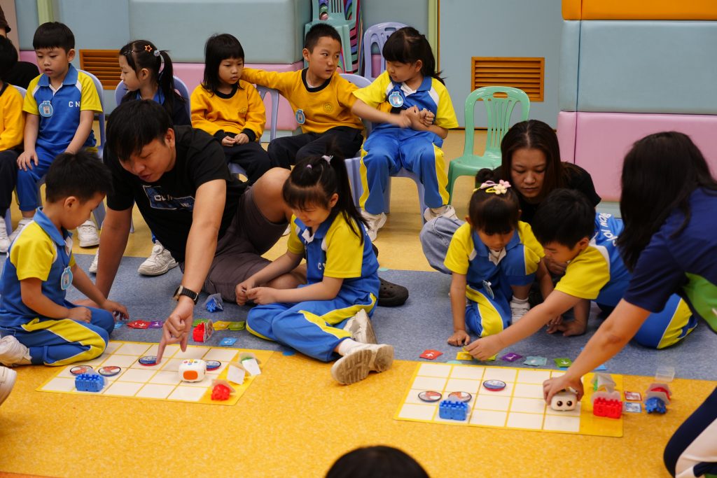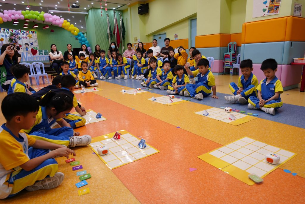 幼稚園(175灣景分校)家長觀課日,K3D班進行了「環球種植『家』」家長觀課活動 。活動中,孩子化身為「全球植物總部」的救助隊員,運用 Tale-Bot Pro 機械人完成編程任務 。孩子們表現出色,不僅能準確計算 10 以內的加法,更透過排卡與糾錯邏輯,展現了優秀的運算思維 。在親子協作環節,家長擔任領航員,引導孩子克服「火山爆發」與「暴雨」等路障考驗 。孩子們在溫馨的溝通中學會解決困難,最終與家長共同見證植物茁壯成長,現場氣氛熱烈且充滿教育意義 。
