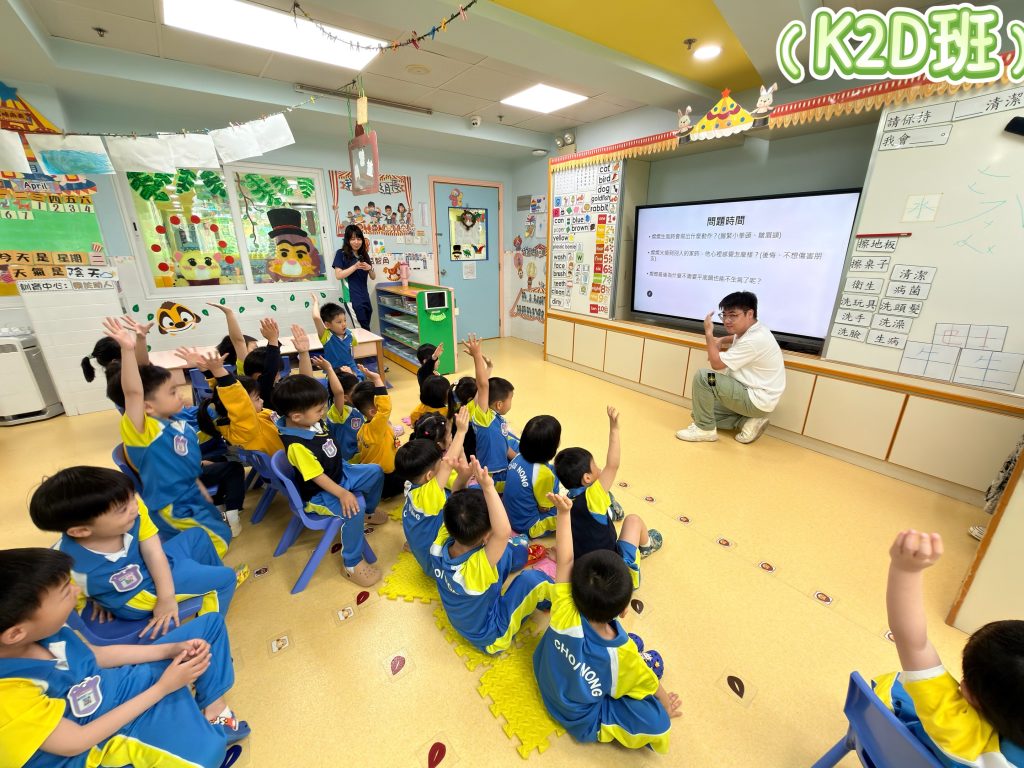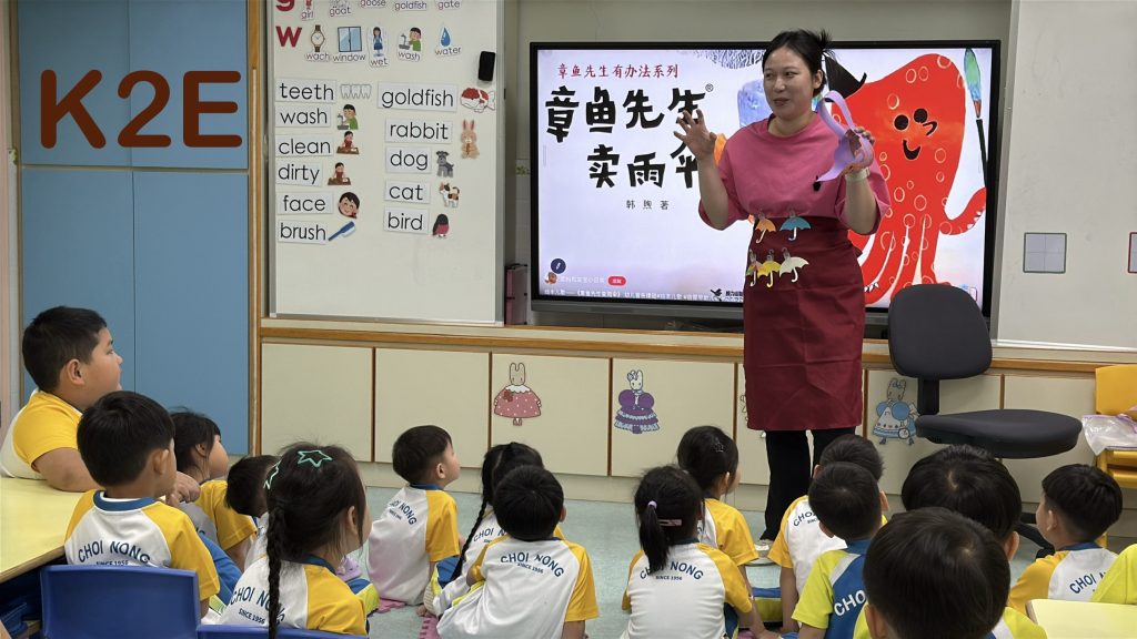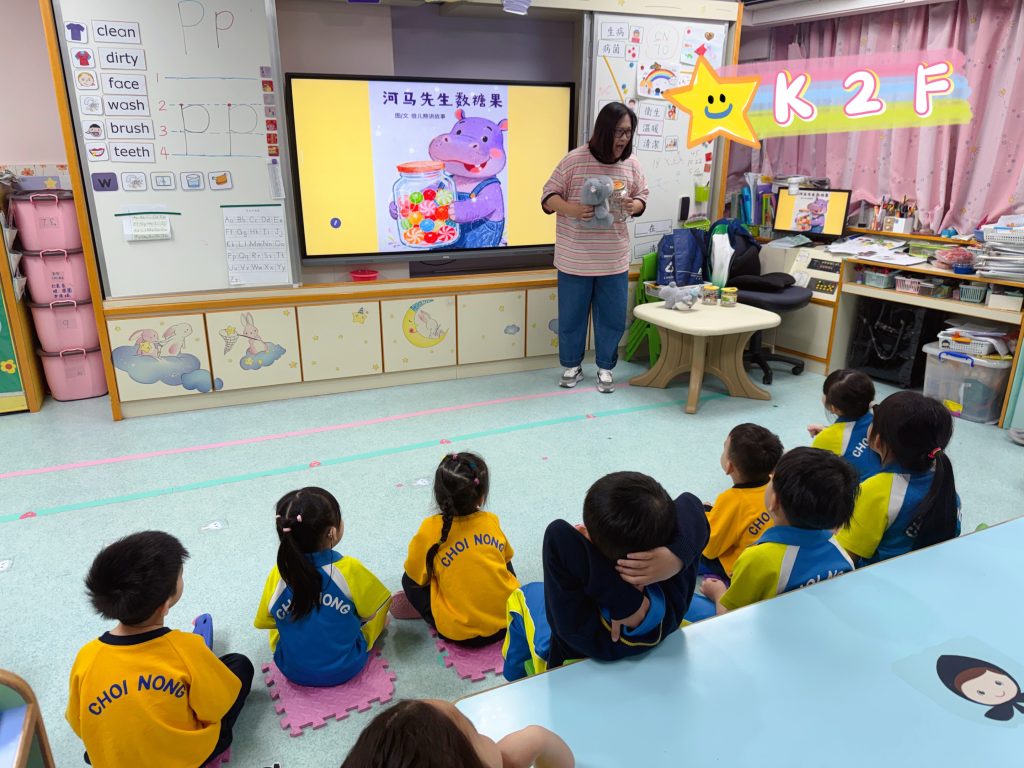 首先,K2級老師特別為參與活動的家長舉辦了「繪本技巧分享會」。會上,老師講解了選擇適齡圖書的原則,以及分享如何運用聲音、表情及肢體語言引發幼兒的閱讀興趣,家長們展現了極高的投入度。