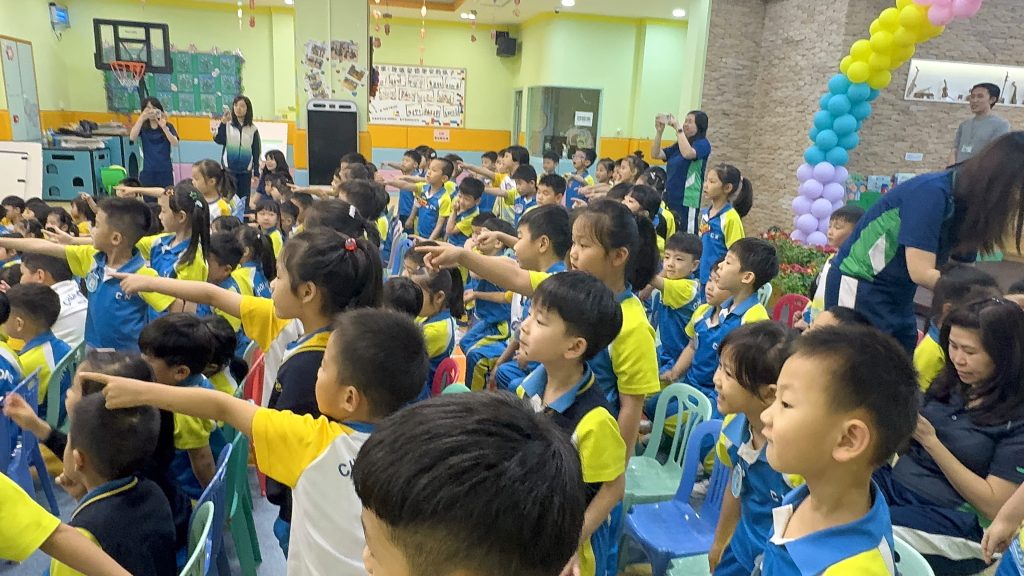 為提升幼兒對環境衛生的關注,幼稚園(175灣景分校)邀請市政署帶來教育劇場《再見奧圖》,K2 及 K3 級幼兒共同欣賞。