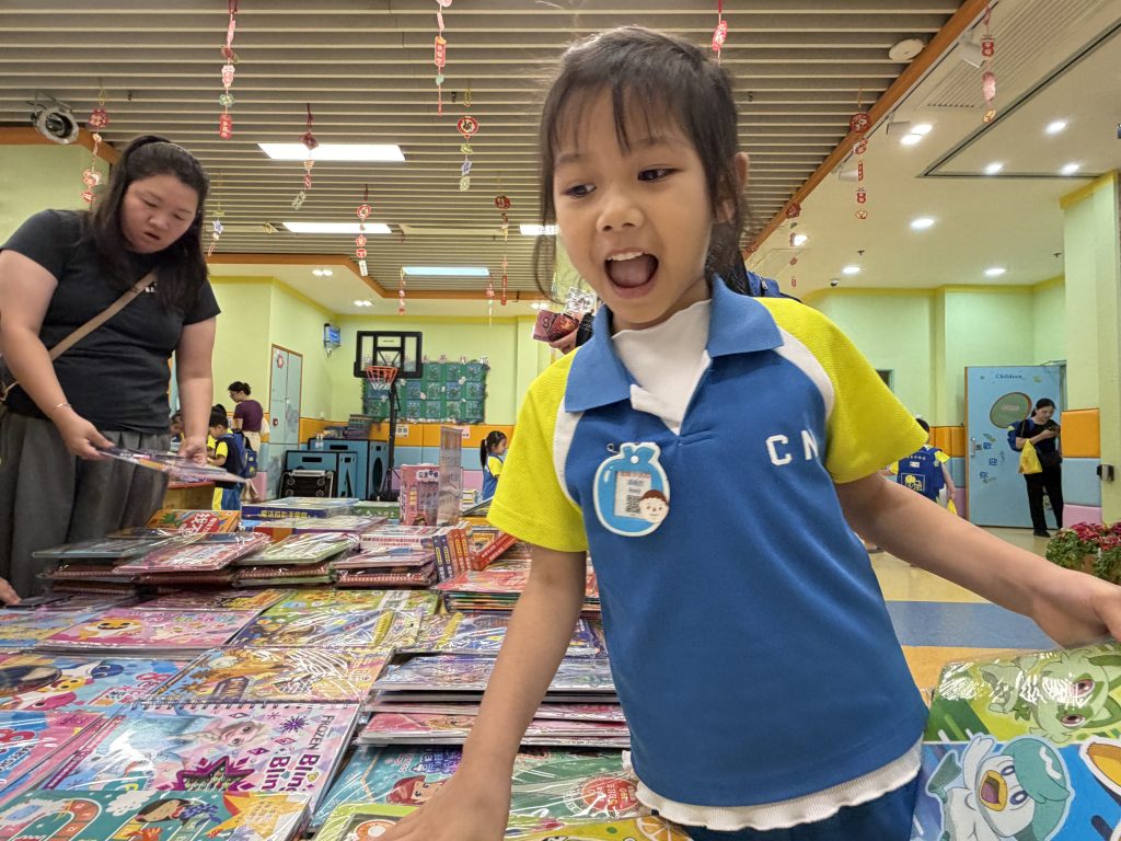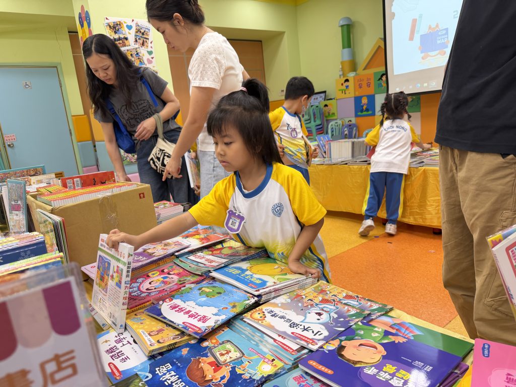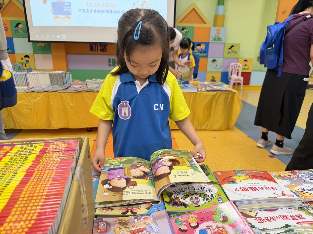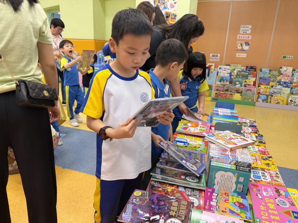 活動在禮堂進行,孩子們可親自翻閱及觸摸各類繪本、童話故事和兒童文學作品,在故事裡盡情探索,享受與書本互動的樂趣。家長亦陪伴孩子一起選書,根據興趣與年齡需要,挑選適合的圖書帶回家共讀。書展現場氣氛熱烈,有學生因為慢了一步買不到心儀圖書而傷心哭起來;亦有孩子回家後仍念念不忘,再和家長回校購買。