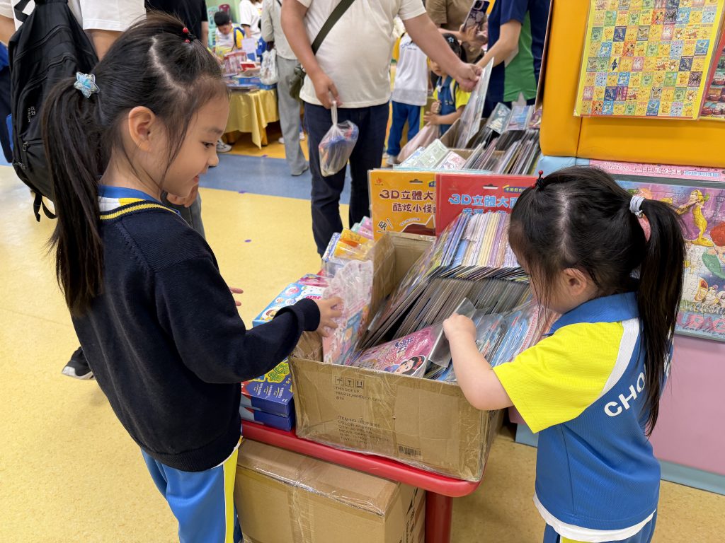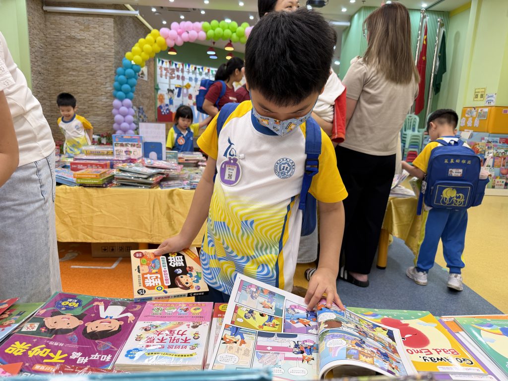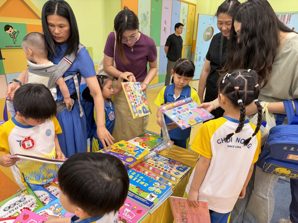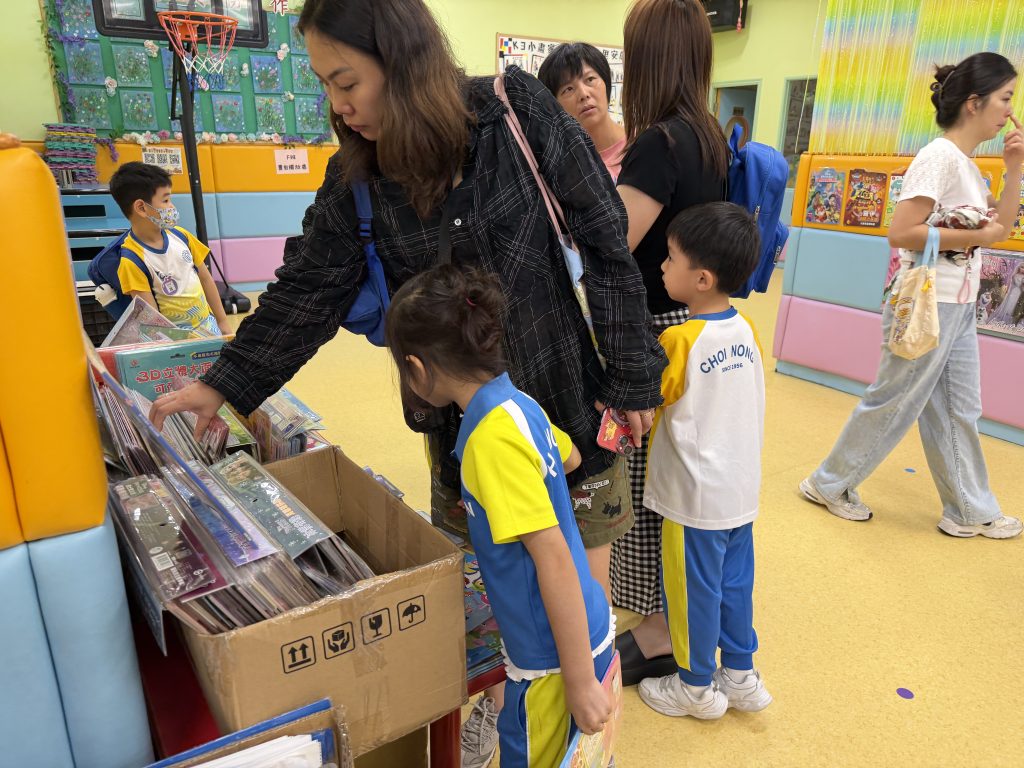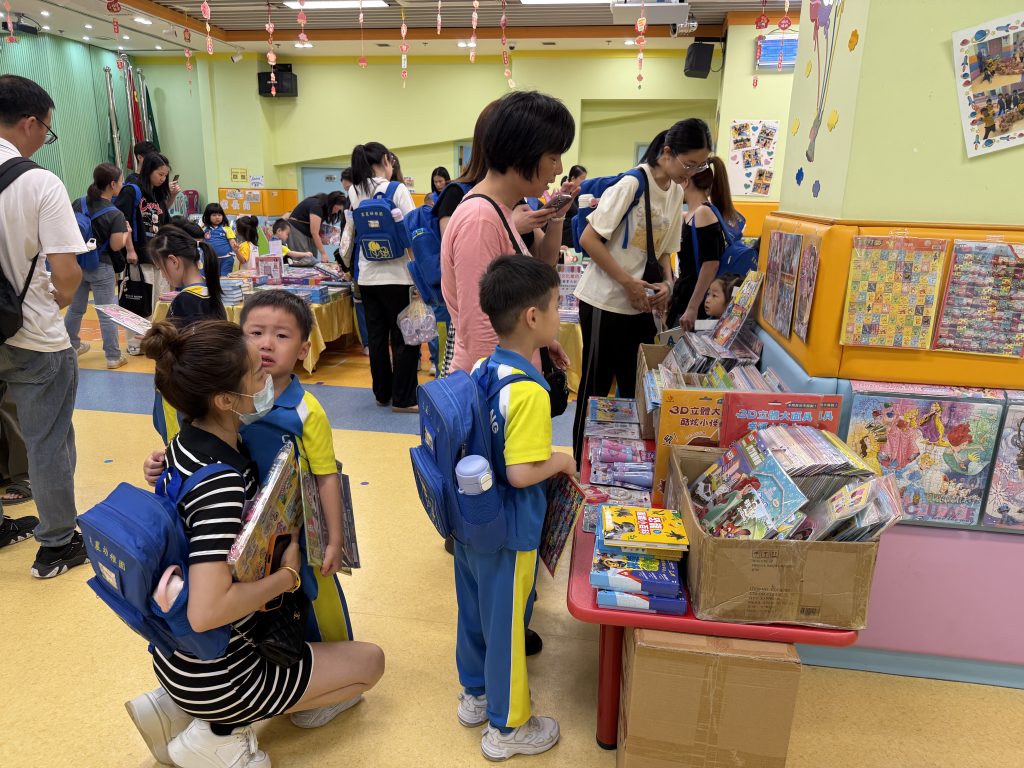 活動在禮堂進行,孩子們可親自翻閱及觸摸各類繪本、童話故事和兒童文學作品,在故事裡盡情探索,享受與書本互動的樂趣。家長亦陪伴孩子一起選書,根據興趣與年齡需要,挑選適合的圖書帶回家共讀。書展現場氣氛熱烈,有學生因為慢了一步買不到心儀圖書而傷心哭起來;亦有孩子回家後仍念念不忘,再和家長回校購買。